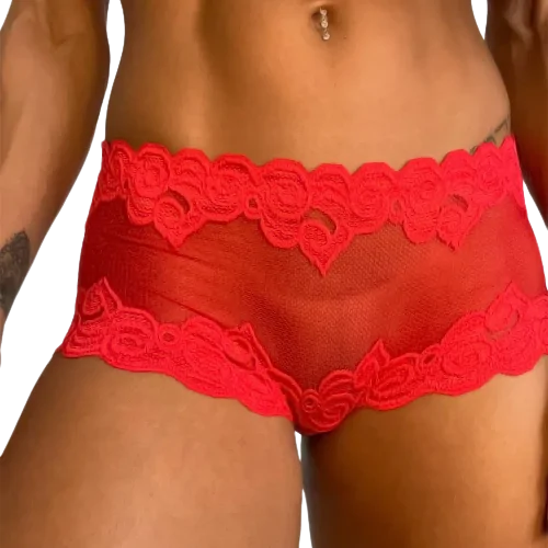 Calcinha Caleçon Tipo Shortinho em Renda com Joia no Bumbum Vermelha Taí Sensualle Lingerie